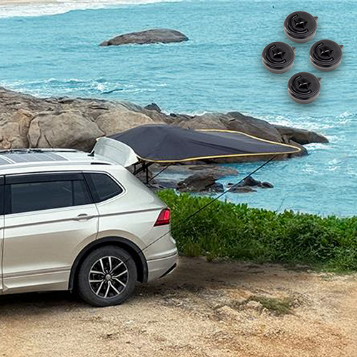 展開面積約 4㎡,可透過掛環與固定繩快速連接車尾或車頂行李桿,形成舒適遮陽空間,不超出車位、不影響他人。 依靠彈簧鋼柔韌且具剛性的特性,可迅速摺疊為直徑約 76 公分、厚度低於 2 公分 的扁平圓形。體積輕巧,能輕鬆放進車內角落,做到 「展開是空間,收起如無形」